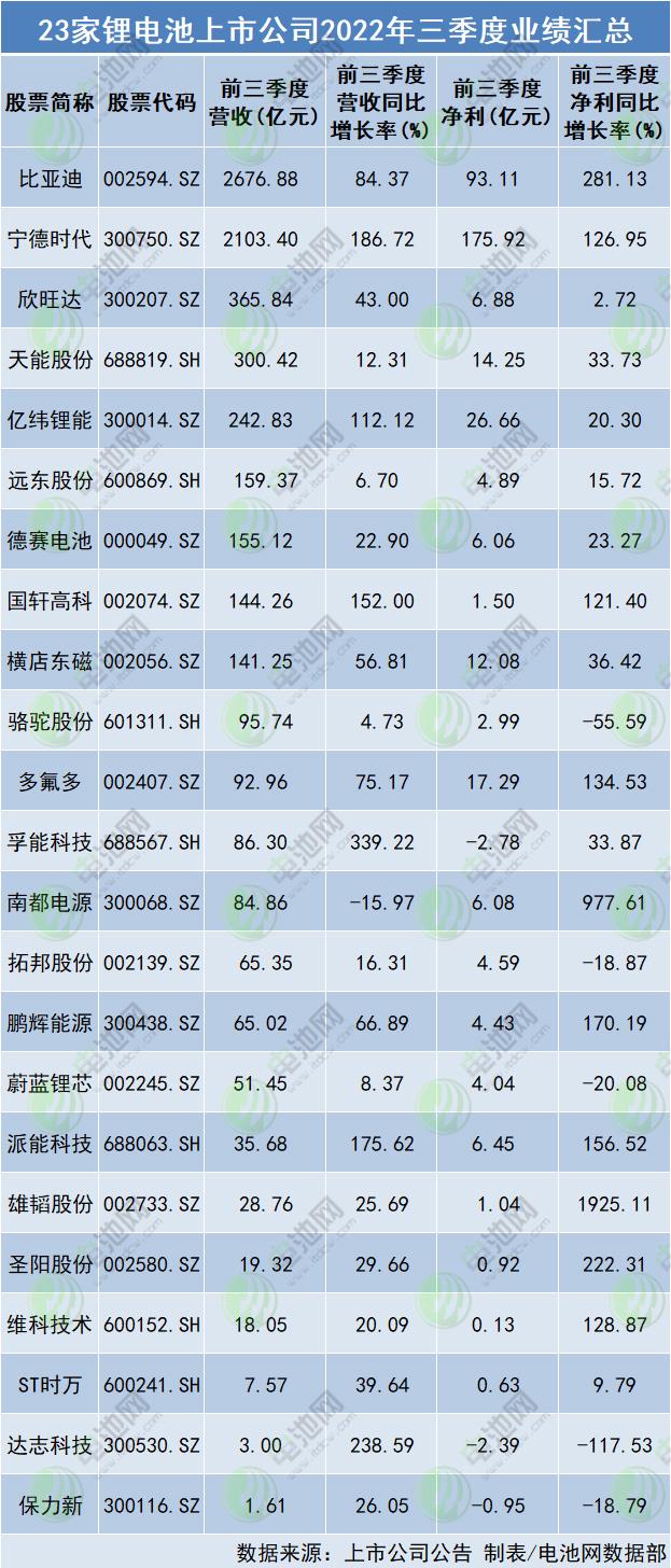 據電(diàn)池網梳(shu)理來看(kàn),前三季(ji)度,營收(shōu)方面,23家(jia)锂電池(chi)🏃♀️上☔市公(gong)⭐司營收(shou)總額6945.06億(yì)元,平均(jun)營收301.96億(yì)元,其中(zhōng)比亞📞迪(dí)、甯德時(shí)代、欣旺(wàng)達、天能(néng)股份、億(yì)緯锂能(néng)、遠東股(gǔ)份、德賽(sài)電池、國(guo)軒🔱高科(ke)、橫店東(dong)磁9家營(ying)收超百(bai)億,比亞(yà)迪、甯德(dé)時🏃♀️代營(ying)收分别(bié)達2676.88億、2103.40億(yi);22家營收(shōu)同比正(zhèng)增長,其(qi)中孚能(neng)科技、達(dá)志科技(jì)、甯德時(shí)代、派能(neng)科技、國(guó)軒💘高科(kē)、億緯锂(li)能👣6家實(shi)現營收(shou)同比翻(fān)倍增長(zhang),孚能科(ke)技營收(shou)同比增(zēng)長超3倍(bèi)。