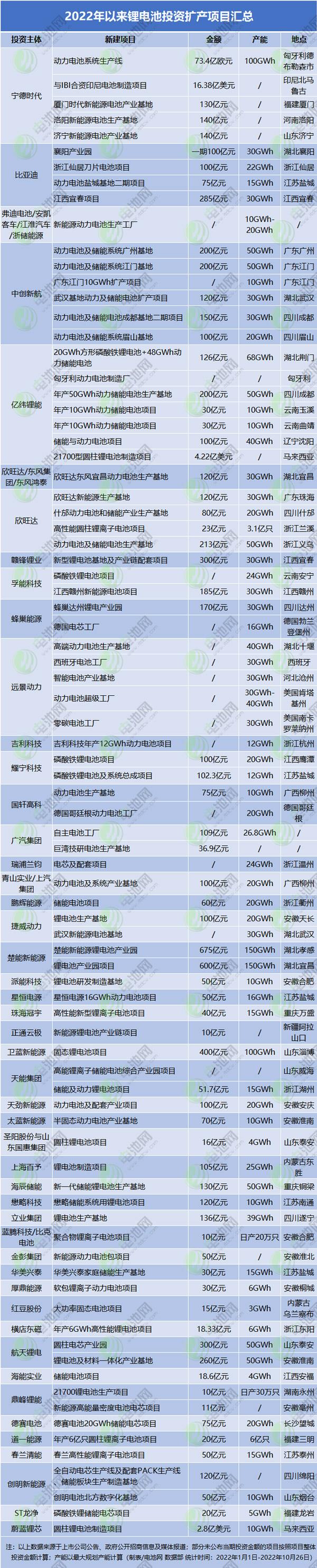 12月1日電(dian)池網公(gōng)布的數(shu)據顯示(shì),據不完(wán)全統計(jì),2022年以來(lai),僅在锂(li)電池生(shēng)産制造(zao)領域,新(xīn)公布的(de)投資擴(kuò)産項目(mu)就多達(dá)84個,其中(zhōng)🔞有69個公(gong)布投資(zī)金額,總(zǒng)金額超(chao)8427億元,平(píng)均單個(ge)項目投(tóu)資額超(chāo)122億元;公(gong)布年産(chǎn)能的⁉️項(xiang)目有68個(gè)📱,總産能(neng)約2038GWh。